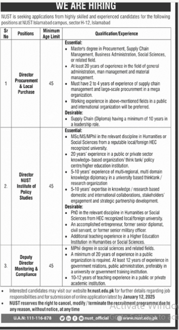 - For detailed job descriptions and responsibilities, visit www.nust.edu.pk